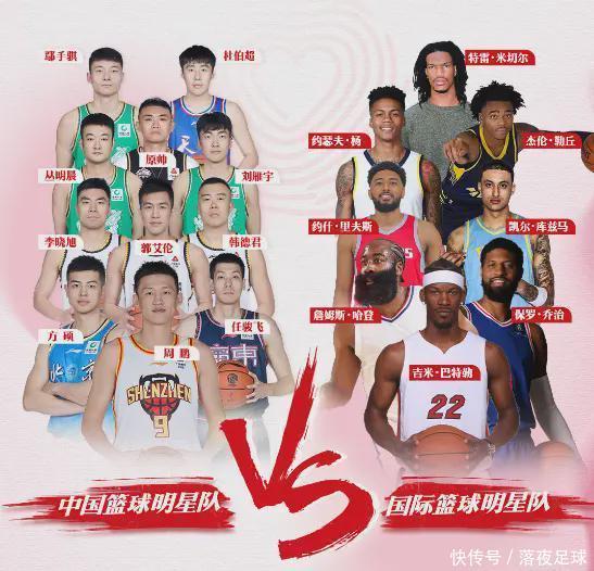 中国篮球明星队:本次中国篮球明星队由CBA联赛冠军球队辽宁队为班底,加上多位CBA顶尖球员构成。领衔的是久未出面的郭艾伦,他能否在慈善赛中找回过去亚洲最好控卫的气象,无疑是最大看点之一。此外,韩德君、李晓旭、刘雁宇、丛明晨、鄢手骐等辽宁队悍将整个在列,还有来自北京队的方硕、山西队的原帅、深圳队的周鹏、广东队的任骏飞等实力派球员加盟。主教化则是教导丰富的杜锋,他的抓教才智将为球队增添不少胜算。